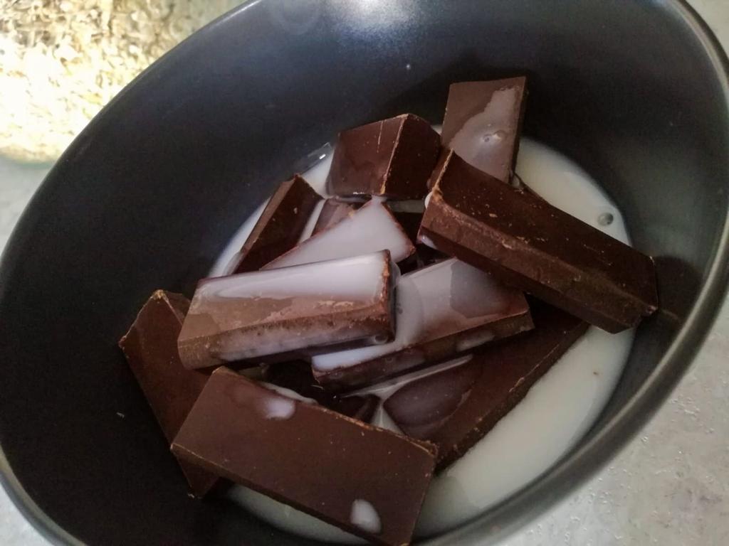 CUARTO PASO. Derretimos el chocolate con un poco de leche de almendras (recomiendo mirar la lista de ingredientes del chocolate y comprobar que el primero de ellos no sea azúcar).